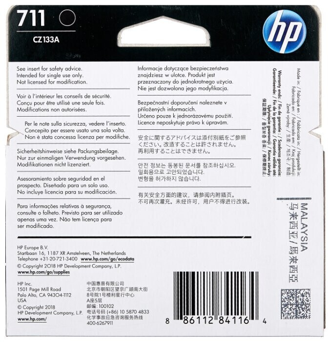 • Μαύρο μελάνι τεχνολογίας Inkjet HP 711, χωρητικότητας 80 ml.