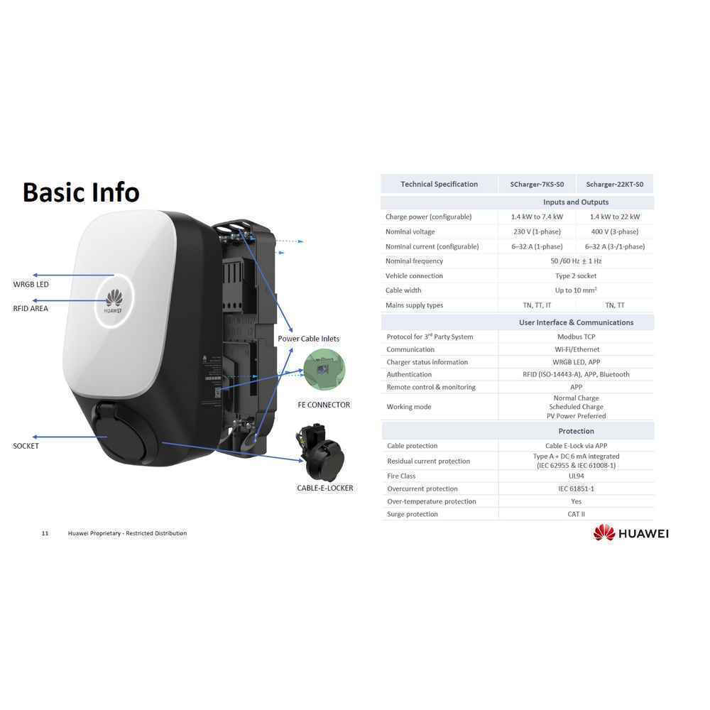 Huawei Επιτοίχιος Τριφασικός Σταθμός Φόρτισης 22kW Type 2 (02314BXL-003)