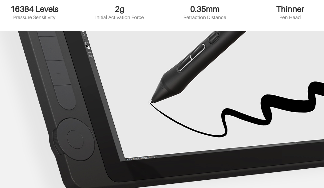 Το PenTech 4.0 διαθέτει αρχική δύναμη ενεργοποίησης 2g που καταγράφει με ακρίβεια ακόμη και απαλές κινήσεις. Η λεπτότατα ρυθμισμένη καμπύλη πίεσης δείχνει τέλεια την ευαισθησία πίεσης 16K από την ελαφριά έως την έντονη. Επίσης, η λεπτότερη μύτη και η αυτόματη ευθυγράμμιση κλίσης μπορούν να σας βοηθήσουν να παρακολουθείτε καλύτερα το ποντίκι και να μειώσετε την παράλλαξη!
