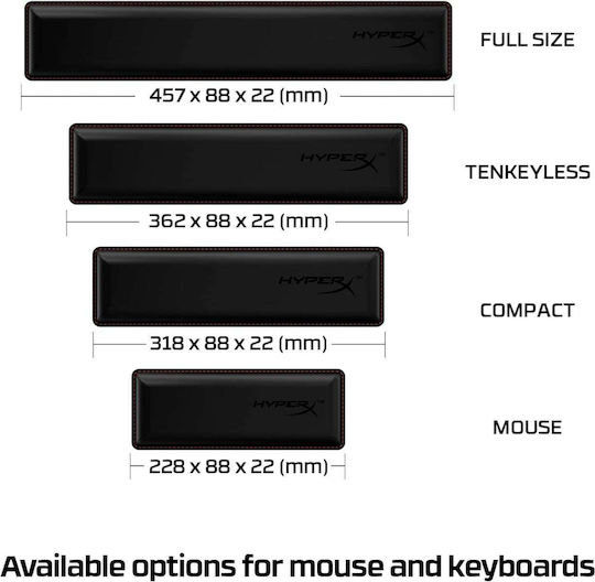 Το στήριγμα καρπού HyperX παρέχει άνετη αντικραδασμική προστασία καρπού για χρήση με ποντίκι ή διάφορα μεγέθη πληκτρολογίου. Διαθέτει αντιολισθητικό φυσικό καουτσούκ στο κάτω μέρος, σχεδιασμένο για να παραμένει σταθερό ενώ τα δάχτυλά σας πετούν πάνω από τα πλήκτρα.