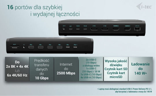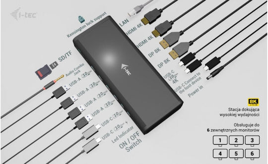 i-tec USB-C Docking Station με HDMI/DisplayPort 4K και σύνδεση 4 Οθονών Μαύρο (CA6MONITORDOCKPD)