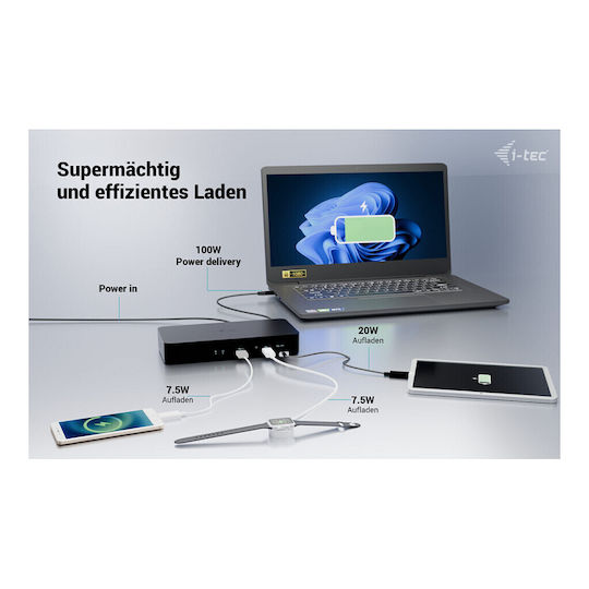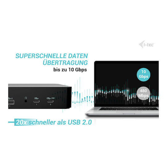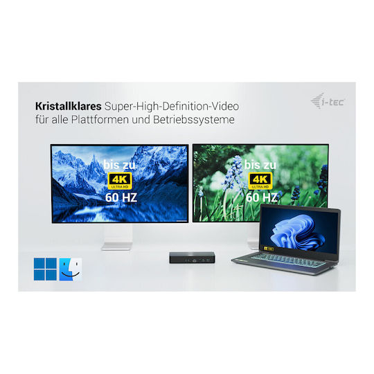 i-tec USB-C Docking Station με HDMI/DisplayPort 4K PD Ethernet Μαύρο (CAINTGDUAL4KDOCPD)