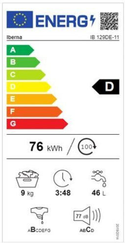 Iberna Πλυντήριο Ρούχων 9kg 1200 Στροφών IB 129DE-11