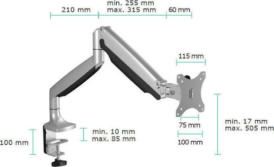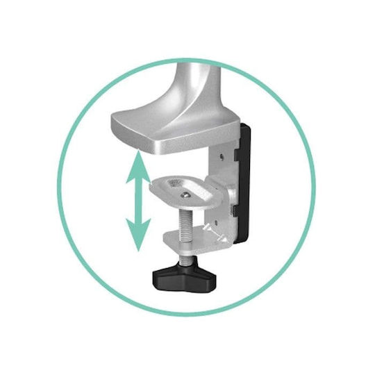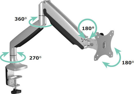 Επιτραπέζια μεταλλική βάση στήριξης για οθόνη έως 32″ και μέγιστου βάρους 9 kg, με 2 βραχίονες και πλήρη ελευθερία κινήσεων. Διαθέτει 4 συνολικά αρθρώσεις με ελευθερία κίνησης, οι οποίες σας επιτρέπουν να έχετε ανά πάσα στιγμή την οθόνη σας στην επιθυμητή θέση.Χάρη στο clamp στήριξης που διαθέτει μπορείτε εύκολα να την τοποθετήσετε με ασφάλεια στο γραφείο σας (μέγιστο πάχος επιφάνειας γραφείου έως και 85mm).