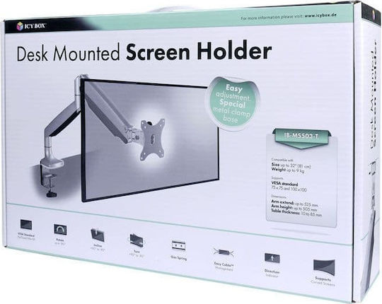 Icy Box Βάση Γραφείου Οθόνης έως 32″ με Βραχίονα Ασημί (IB-MS503-T)