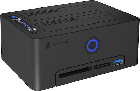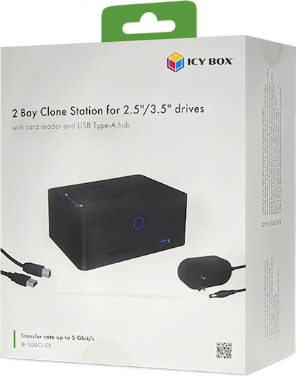 Clone Station για σκληρούς δίσκους SATA HDD/SSD 2.5″ & 3.5″ με ενσωματωμένο card reader και θύρα USB-A. Ο σταθμός κλωνοποίησης είναι εξοπλισμένος με διπλή θύρα που υποστηρίζει τόσο δίσκους SATA 2.5″ όσο και 3.5″, προσφέροντας στους χρήστες τη δυνατότητα να αντιγράφουν ή να δημιουργούν αντίγραφα ασφαλείας σε διάφορους τύπους σκληρών δίσκων.