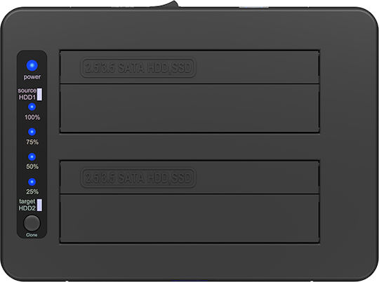 • Υποστηρίζει την κλωνοποίηση δύο σκληρών δίσκων HDD / SSD 2.5″ και 3.5″