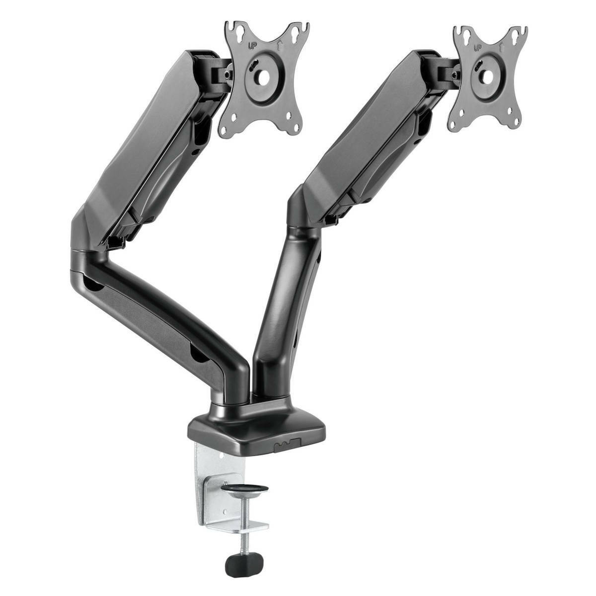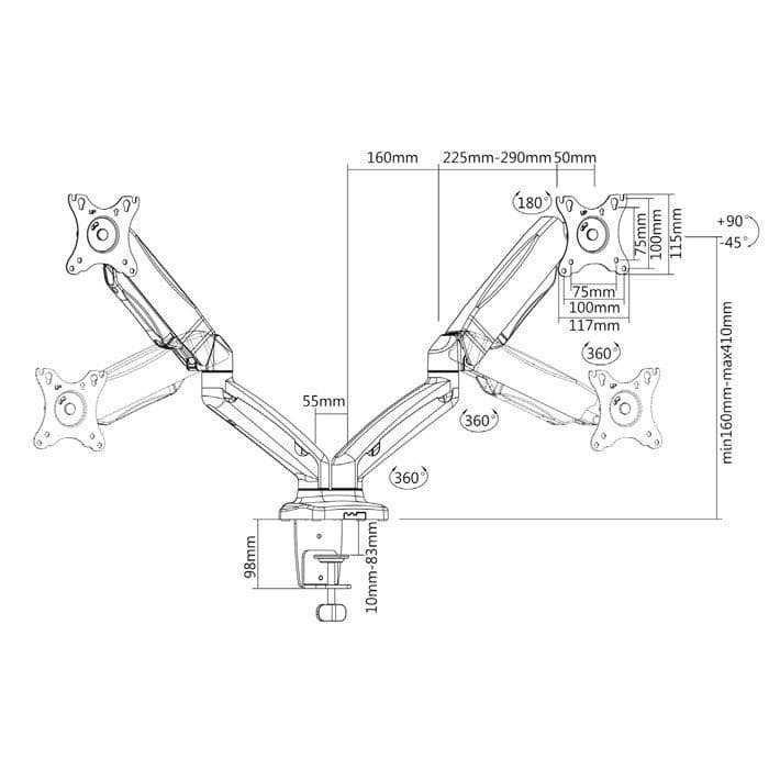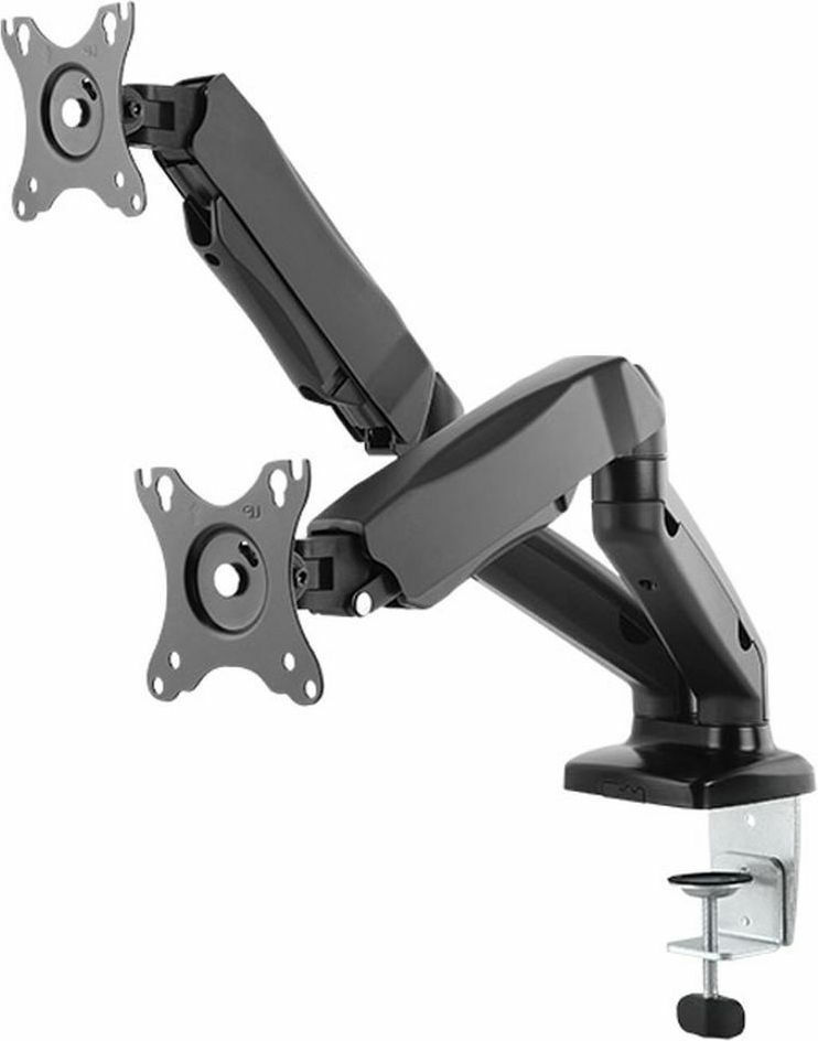 Η IB-MS504-T είναι μία εξαιρετικά εργονομική και μοντέρνα βάση στήριξης για την τοποθέτηση 2 οθονών υπολογιστή στο γραφείο σας. Διαθέτει 2×4 συνολικά αρθρώσεις με ελευθερία κίνησης, οι οποίες σας επιτρέπουν να έχετε ανά πάσα στιγμή τις οθόνες σας στην επιθυμητή θέση. Χάρη στο clamp στήριξης που διαθέτει μπορείτε εύκολα να τοποθετήσετε με ασφάλεια τις οθόνες σας στο γραφείο σας.