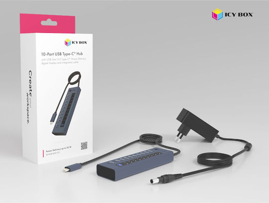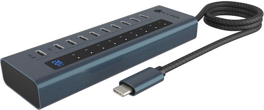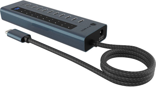 Icy Box USB 3.2 Hub 10 Θυρών με σύνδεση USB-C Γκρι IB-HUB1450-C31