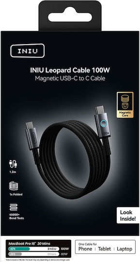 Iniu Leopard Cable Type Usb-c To Usb-c 5 A Magnetic Pd 100w 1.2m Black
