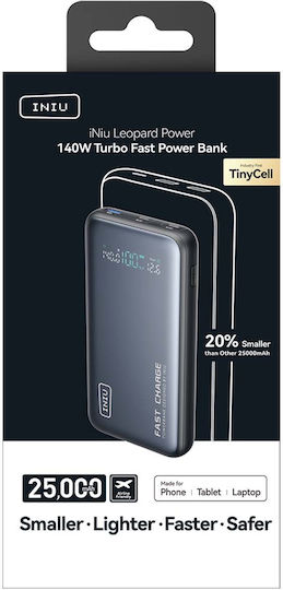 Iniu P64-P1 Power Bank 25000mAh 140W με Θύρα USB-A και 2 Θύρες USB-C Μαύρο