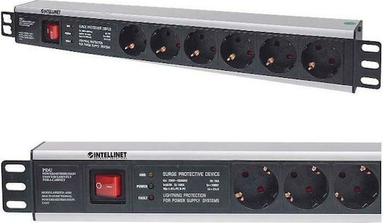 Πολύπριζο ρεύματος 1.5U rackmount 19″, 6 θέσεων σούκο με διακόπτη On/Off και προστασία υπέρτασης.