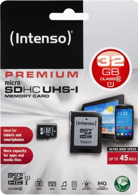 Κάρτα μνήμης microSDHC 32 GB, κατηγορίας 10, UHS-I από την Intenso.