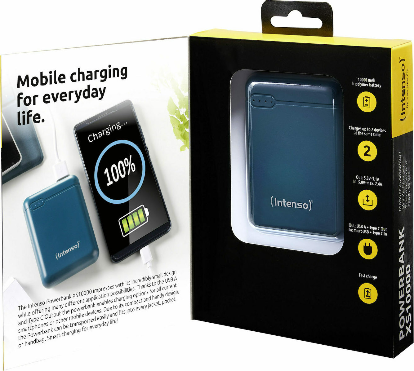 Intenso XS Power Bank 10000mAh με Θύρα USB-A και Θύρα USB-C Petrol