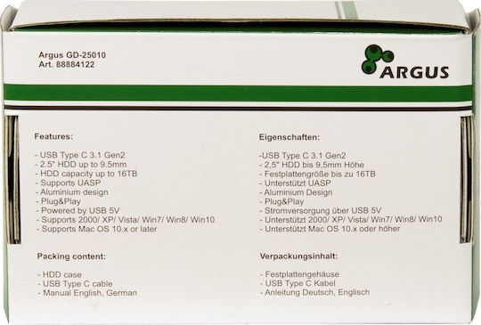 Inter-Tech GD-25010 Θήκη για Σκληρό Δίσκο 2.5″ SATA III με σύνδεση USB 3.1 Type-C 88884122