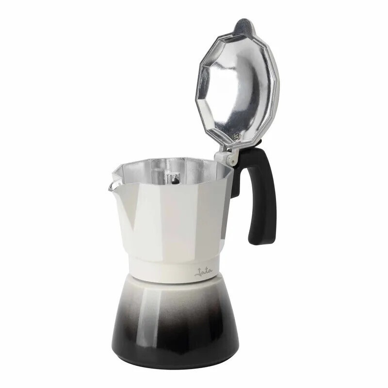 Το μπρίκι espresso διαθέτει ανθεκτική κατασκευή με αλουμινένιο σώμα και σιλικονούχο ελαστικό, καθώς και αντιθερμική λαβή. Η εξωτερική επιφάνεια είναι βαμμένη με στόχο αντοχής σε υψηλές θερμοκρασίες έως 280°C. Είναι συμβατό με όλες τις εστίες, συμπεριλαμβανομένης της ινδιοκεντρικής εστίας. Ο διάμετρος της βάσης για ινδιοκεντρικές εστίες είναι 8.9 cm, εξασφαλίζοντας ομοιογενή κατανομή της θερμότητας. Η χωρητικότητα είναι 3 φλιτζάνια (200 ml) με συνολική ποσότητα 0.2 λίτρα. Το υλικό του μπρικιού είναι αλουμίνιο.