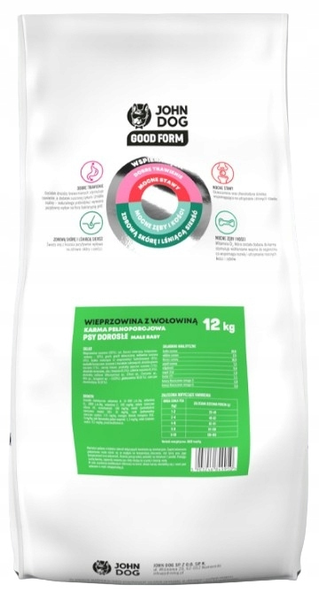 John Dog Good Form 12kg Ξηρά Τροφή χωρίς Γλουτένη για Ενήλικους Σκύλους με Βοδινό και Χοιρινό
