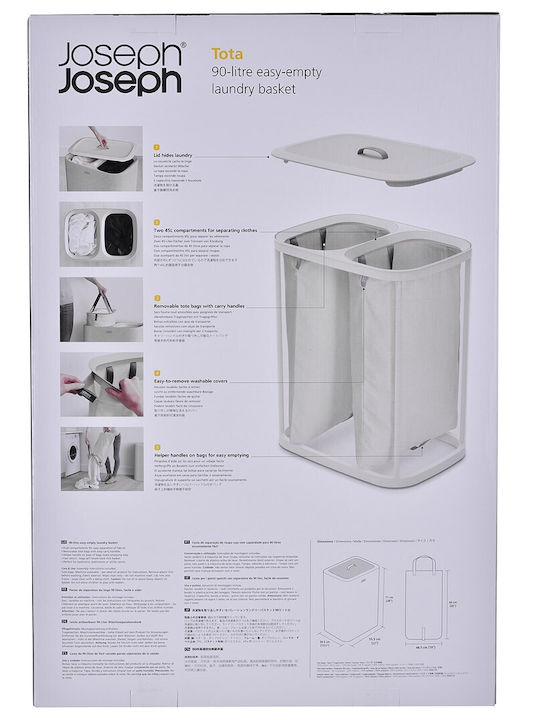 Καλάθι απλύτων με διπλά διαμερίσματα για εύκολη διαχωρισμό των ρούχων. Περιλαμβάνει αφαιρούμενους σακούλες μεταφοράς με εύχρηστες λαβές. Η βοήθεια στη βάση των σακουλών διευκολύνει την αδειά τους. Ιδανικό για δωμάτια, μπάνια ή χώρους υπηρεσίας.