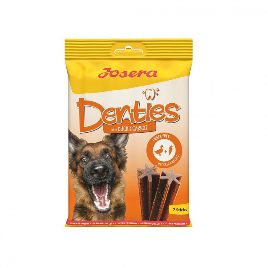 Josera Denties με πάπια και καρότο είναι μια οδοντική λιχουδιά που βοηθά στη φροντίδα των δοντιών του σκύλου σας. Η κυτταρίνη που περιέχεται προσφέρει ευχάριστη φροντίδα των δοντιών, διατηρώντας τη στοματική υγιεινή.