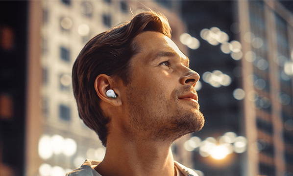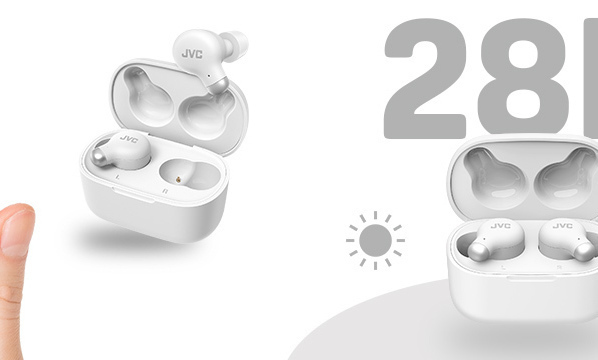 Συμπαγής σχεδιασμός που είναι άνετος στη χρήση και εύκολος στη μεταφορά. Απολαύστε μακρά ακρόαση οποιαδήποτε στιγμή, οπουδήποτε, για έως και 28 ώρες με θήκη φόρτισης