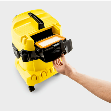 Εξαιρετικά ισχυρή και ενεργειακά αποδοτική με 1000 W: Η σκούπα υγρής και ξηρής αναρρόφησης WD 4 V-20/5/22, ο εύκαμπτος σωλήνας αναρρόφησης και το ακροφύσιο δαπέδου με κλιπ συντονίζονται βέλτιστα για τα καλύτερα αποτελέσματα καθαρισμού. Οι υγροί και οι ξηροί ρύποι ακόμη και οι χονδροειδείς απομακρύνονται εύκολα χωρίς αλλαγή του φίλτρου. Η συσκευή διαθέτει ένα στιβαρό και ανθεκτικό στην κρούση πλαστικό κάδο 20 λίτρων, ένα καλώδιο 5 μέτρων, έναν εύκαμπτο σωλήνα αναρρόφησης 2,2 μέτρων, ακροφύσιο δαπέδου με κλιπ, ένα επίπεδο πτυχωτό φίλτρο και μια σακούλα φίλτρου fleece. Χάρη στην κατοχυρωμένη με δίπλωμα ευρεσιτεχνίας τεχνολογία, το φίλτρο στη σκούπα μπορεί να αφαιρεθεί εύκολα και γρήγορα σε λίγα δευτερόλεπτα για ενδελεχή καθαρισμό – χωρίς να έρχεσαι σε επαφή με τους ρύπους. Όπου δεν είναι δυνατή η αναρρόφηση, βοηθάει η πρόσθετη λειτουργία φυσητήρα. Η αφαιρούμενη λαβή επιτρέπει την απευθείας σύνδεση εξαρτημάτων στον εύκαμπτο σωλήνα αναρρόφησης. Ο εύκαμπτος σωλήνας μπορεί να αποθηκευτεί συμπαγώς στην κεφαλή της συσκευής. Οι σωλήνες και το ακροφύσιο δαπέδου είναι επίσης γρήγορα και άνετα σταθμευμένα στον προφυλακτήρα. Άλλα πλεονεκτήματα περιλαμβάνουν το σύστημα κλειδώματος “Pull & Push” για εύκολο άνοιγμα και κλείσιμο του κάδου, καθώς και μια εργονομικά διαμορφωμένη λαβή μεταφοράς για άνετη μεταφορά της ηλεκτρικής σκούπας.