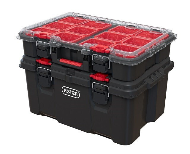 Κάθε στοιχείο είναι αυτόνομο και διαθέτει ισχυρά μάνδαλα για κλειστές θήκες. Ο διοργανωτής περιέχει 8 μικρά και 2 μεγάλα κοντέινερ, διευκολύνοντας την οργάνωση των εργαλείων. Η ασφαλής αποθήκευση των περιεχομένων μπορεί να επιτευχθεί με την προσθήκη λουκέτου (πωλείται ξεχωριστά).
