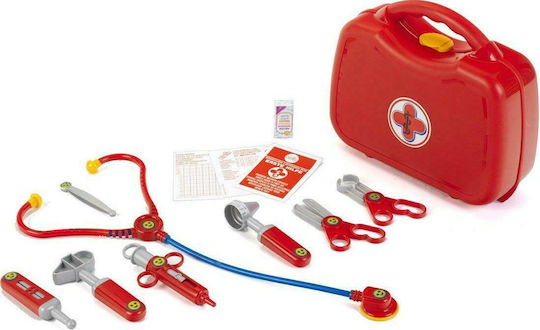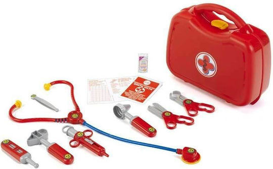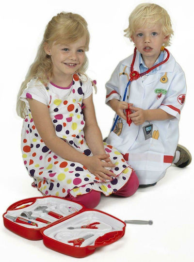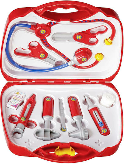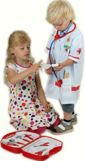 Αυτό το ιατρικό κιτ στεγάζεται σε μια όμορφη, κόκκινη βαλίτσα με άνετο χερούλι. Η βαλίτσα έχει ένα κίτρινο μάνδαλο που την εμποδίζει να ανοίξει κατά τη μεταφορά. Στο εσωτερικό, η βαλίτσα είναι λευκή και είναι εξοπλισμένη με τρύπες για κάθε ένα από τα ιατρικά αξεσουάρ που περιλαμβάνονται στο σετ, έτσι το εσωτερικό είναι πάντα τακτοποιημένο και οι μικροί γιατροί δεν θα έχουν κανένα πρόβλημα να βρουν τον απαραίτητο εξοπλισμό.