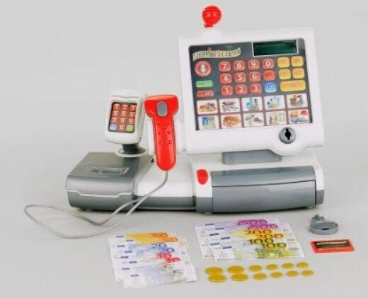Η ηλεκτρονική ταμειακή μηχανή έχει λάβει το βραβείο ‘Spiel Gut’ από την επιτροπή εργασίας παιχνιδιών και μωρών. Περιλαμβάνει όλα όσα χρειάζονται τα παιδιά για να δημιουργήσουν παιχνίδια που προσομοιώνουν καταστάσεις ταμείου της πραγματικής ζωής: ζυγαριά με οθόνη, φως, ήχο και επίπεδη επιφάνεια ζύγισης, πληκτρολόγιο από πλαστική με λειτουργία υπολογισμού που παράγει ήχους όταν πληκτρολογείτε ένα ποσό, και σαρωτή που ανάβει και εκπέμπει ήχο όταν πατήσετε ένα κουμπί. Οι πελάτες έχουν τη δυνατότητα να πληρώσουν είτε με μετρητά είτε με πιστωτική κάρτα. Περιλαμβάνονται αρκετά νομίσματα καθώς και κατάλληλος ήχος όταν οι πελάτες πληρώνουν με κάρτα. Για να ολοκληρωθεί το παιχνίδι προ pretend, η ταμειακή μηχανή μπορεί να ενεργοποιηθεί και να απενεργοποιηθεί με κλειδί, και παράγει έναν εξαιρετικά αυθεντικό ήχο όταν ανοίγει το συρτάρι. Όλα όσα χρειάζεστε για ένα εξαιρετικό παιχνίδι.