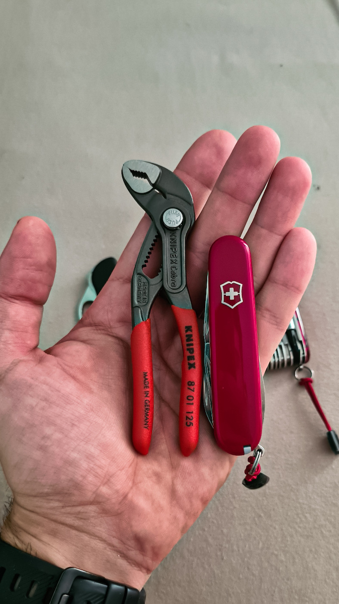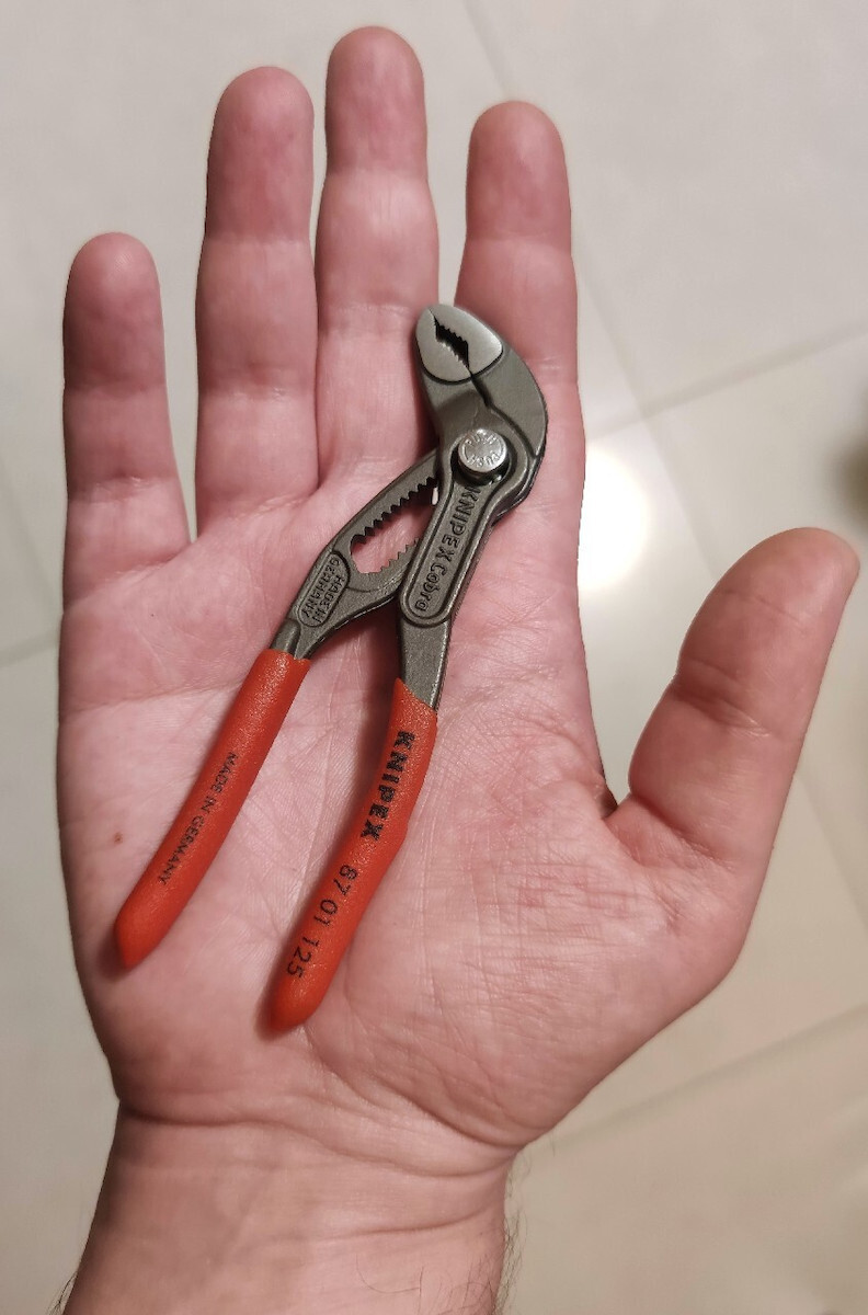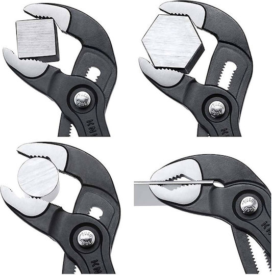 KNIPEX Cobra – Η HiTech Γκαζοτανάλια. Όχι πια χαμένος χρόνος για να βρείτε το σωστό άνοιγμα. Απλώς τοποθετήστε το πάνω μάγουλο του εργαλείου στο προς συγκράτηση αντικείμενο, πιέστε το κουμπί και μετακινήστε το κάτω μάγουλο του εργαλείου μέχρι να ασφαλίσει.