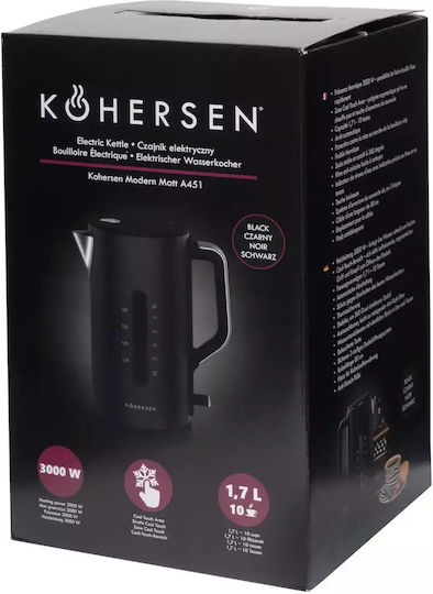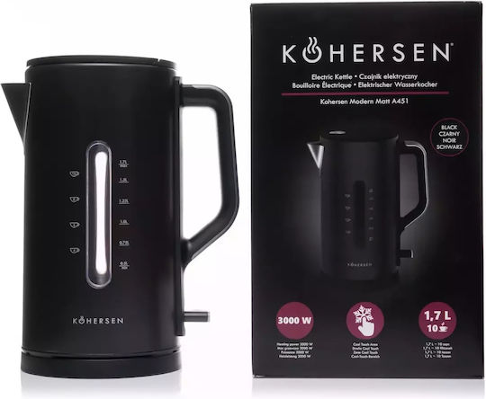 Kohersen Modern Βραστήρας 1.7lt 3000W Μαύρος