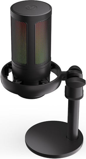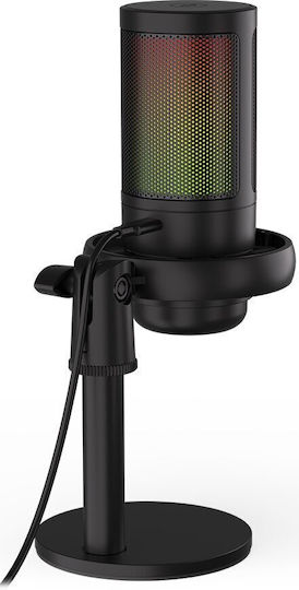 Μαζί με το μικρόφωνο, περιλαμβάνεται και ένας σταθερός μικρός βάθρος, ιδανικός για ρύθμιση αμέσως πίσω από το πληκτρολόγιο ή μπροστά σας. Είναι συμβατό με υπολογιστές Windows, Linux και MacOS καθώς και κονσόλες PS4 και PS5, αλλά και με κινητές συσκευές που υποστηρίζουν OTG και USB-C.