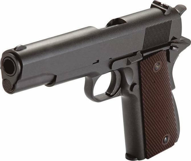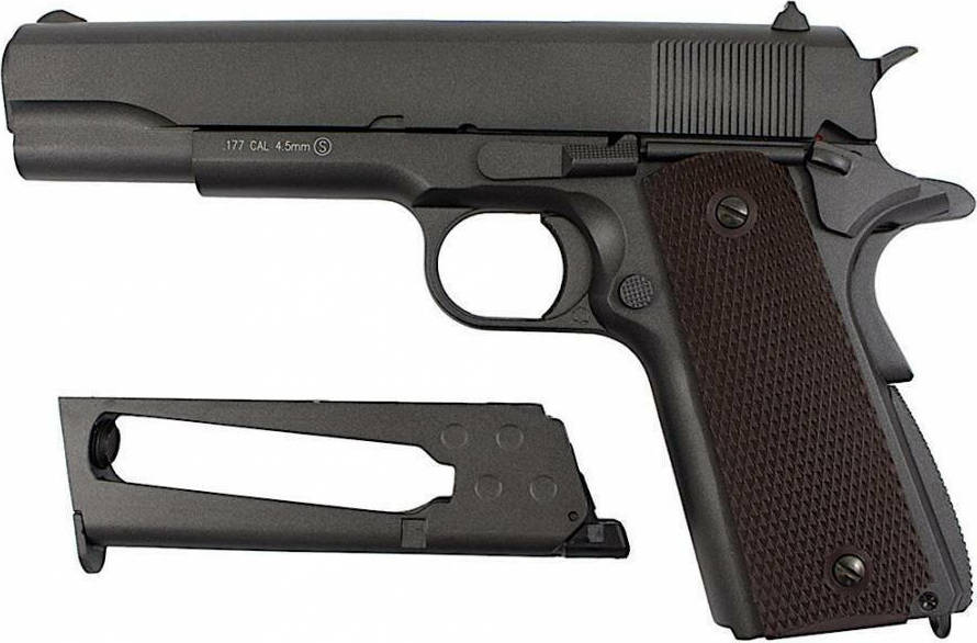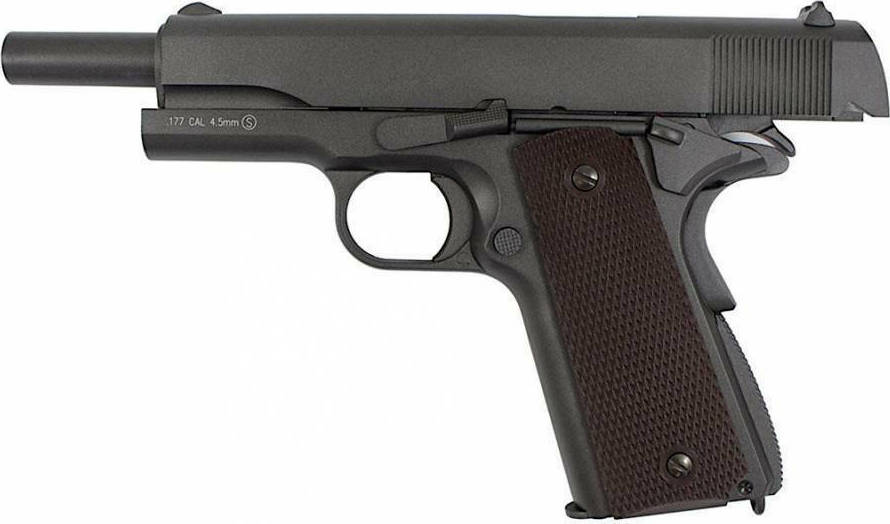 Αυτό το αεροβόλο πιστόλι ΒΒ είναι πιστό αντίγραφο του γνωστού πυροβόλου όπλου Colt 1911, κατασκευασμένο εξ’ ολοκλήρου από μέταλλο. Διαθέτει ικανοποιητική ταχύτητα 100m/s και ικανότητα βολής με ατσάλινα βλήματα BB, με απαιτητική ευστοχία. Η κατασκευή του παρέχει ρεαλιστική αίσθηση κατά την χρήση και ο γεμιστήρας του μοιάζει και δίνει την αίσθηση ενός αληθινού γεμιστήρα, όσον αφορά το βάρος και τις διαστάσεις.