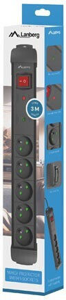Lanberg Πολύπριζο 5 Θέσεων με Διακόπτη και Καλώδιο 3m SP1-05E-0300-BK