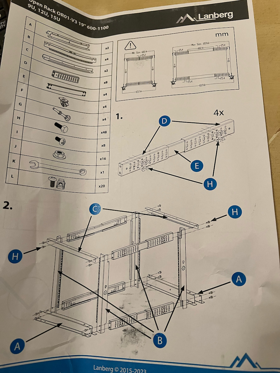 Lanberg Open Rack 15u 600×600-1100 Gray Or01-6115-s