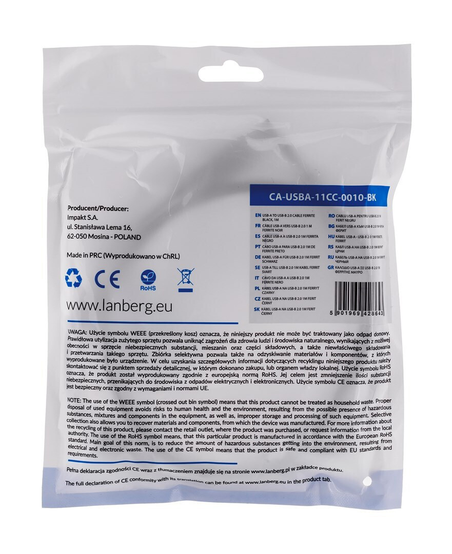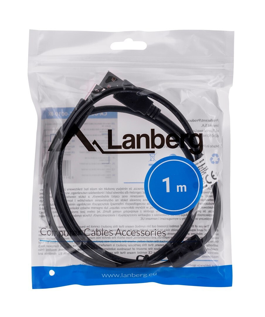 Lanberg USB 2.0 Cable USB-A male – USB-B male Μαύρο 1m (CA-USBA-11CC-0010-BK)