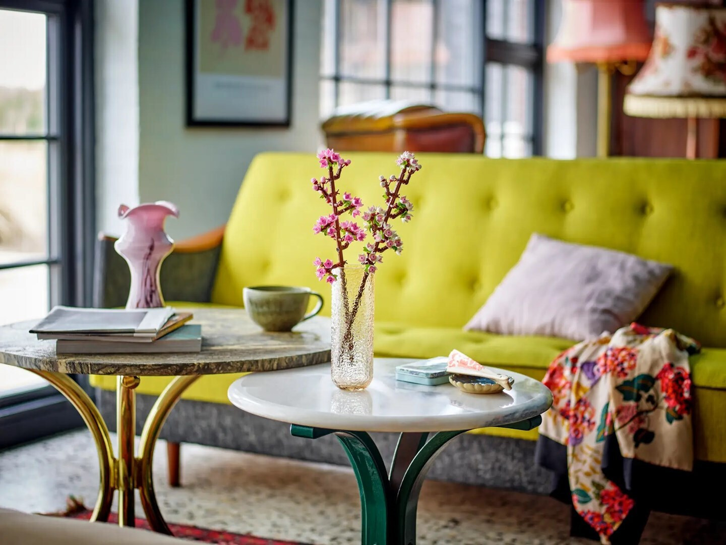 Δημιούργησε δύο καφέ κλαδιά γεμάτα με παστέλ ροζ και λευκά μπουμπούκια που αποτυπώνουν τη μαγεία των ανθισμένων κερασιών – ένα σύμβολο ομορφιάς και αναγέννησης.