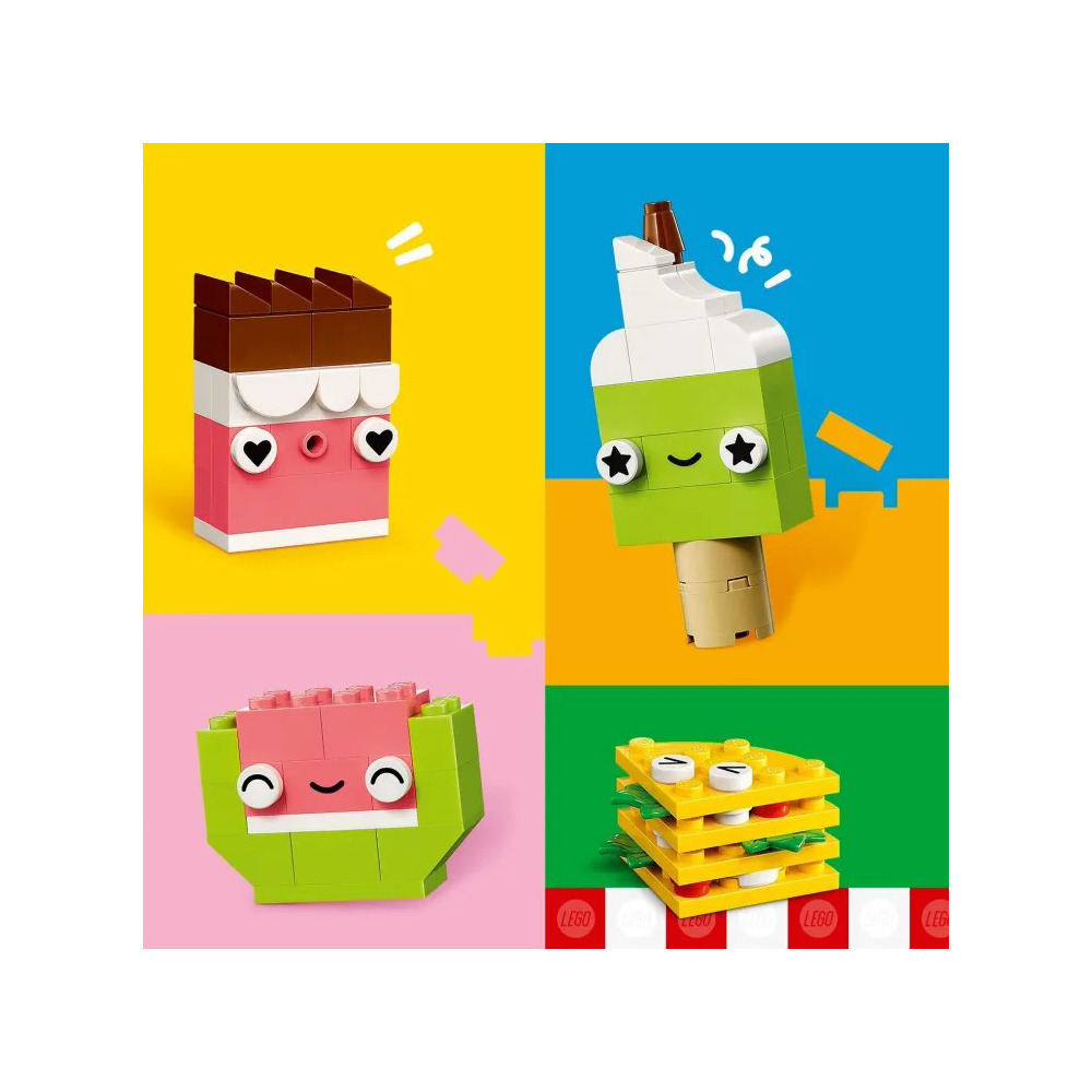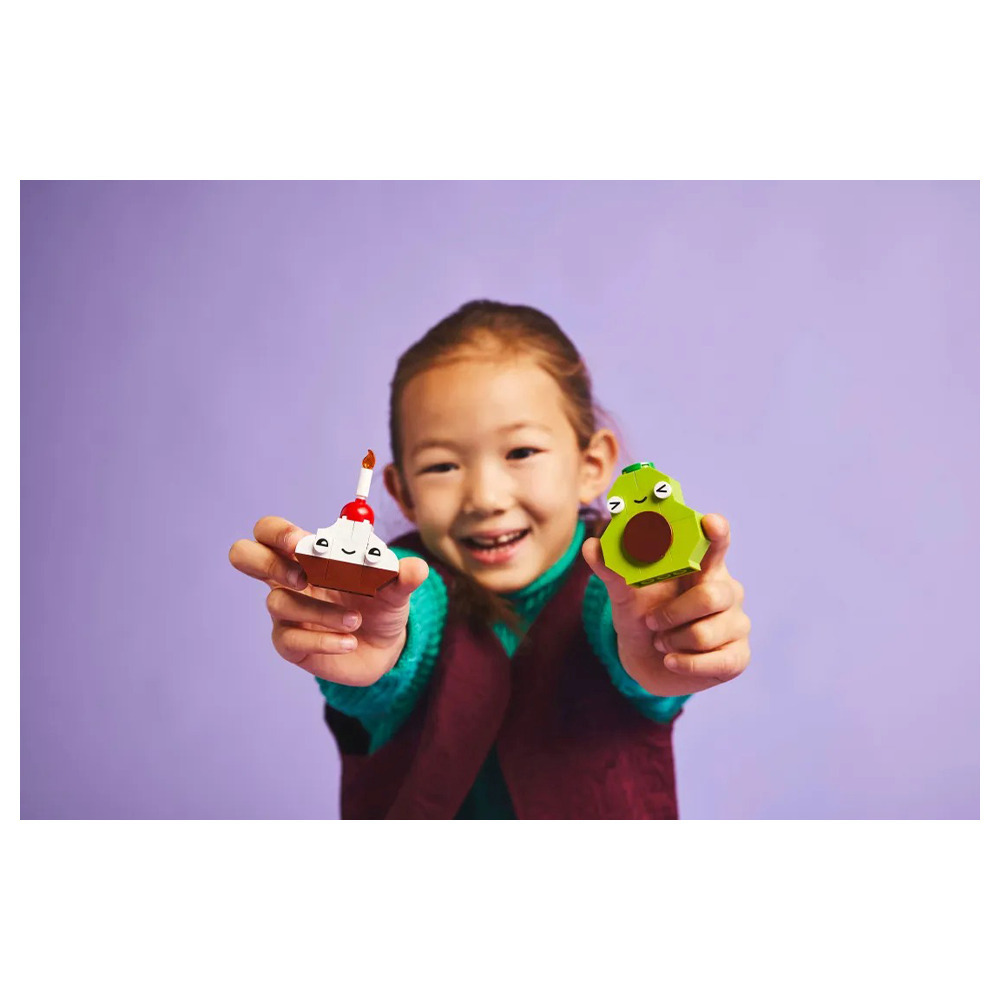 Τα παιδιά χρησιμοποιούν τη χρωματιστή και εντυπωσιακή ποικιλία από τουβλάκια και ειδικά κομμάτια – όπως μάτια, στόματα και διάφορα διακοσμητικά στοιχεία – για να κατασκευάσουν 4 χαριτωμένα παιχνίδια Food Friend: ένα cupcake, παγωτό, αβοκάντο και τακό. Η δημιουργική διασκέδαση συνεχίζεται καθώς τα παιδιά αναμειγνύουν τα τουβλάκια για να επανακατασκευάσουν τα μοντέλα σε μια τούρτα με πασπαλίσματα, ρόφημα bubble-tea, αχλάδι και πανίνι. Καθώς τα παιδιά γίνονται πιο σίγουρα στις ικανότητές τους, μπορούν να ακολουθήσουν τον απλό οδηγό κατασκευής για να αλλάξουν τις εκφράσεις, τα σχήματα ή τα χρώματα και να δημιουργήσουν νέους Food Friends, όπως πράσινο παγωτό, κουτί χυμού, φέτα καρπουζιού, σοκολάτα και έναν υπερμεγέθη σάντουιτς.