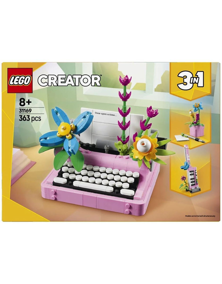 Το LEGO® Creator 3-in-1 31169 είναι ένα διασκεδαστικό σετ παιχνιδιού που περιλαμβάνει μια μίνι γραφομηχανή διακοσμημένη με 4 πολύχρωμα τουβλάκια-λουλούδια. Απευθύνεται σε αγόρια και κορίτσια ηλικίας 8 ετών και άνω και διαθέτει κινούμενο πληκτρολόγιο και χαρτί κατασκευασμένο από τουβλάκια.