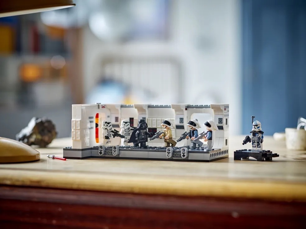 Αναπαράστησε την κατάληψη του Tantine IV από τον Darth Vader στην ταινία Star Wars: Μια Νέα Ελπίδα. Ανατίναξε την πόρτα και ξεκίνα τη μάχη με μπλάστερ μεταξύ των Στρατιωτών της Αυτοκρατορίας του Darth Vader και των Στρατιωτών του Επαναστατικού Στόλου του Κυβερνήτη Αντίλλες. Ποιος θα θριαμβεύσει αυτήν τη φορά; Εσύ αποφασίζεις! Όταν κερδίσεις τη μάχη, τοποθέτησε την κατασκευασμένη από τουβλάκια σκηνή δίπλα σε μια ειδική μίνι φιγούρα του στρατιώτη ARC Trooper Fives για την 25η επέτειο των LEGO® Star Wars.