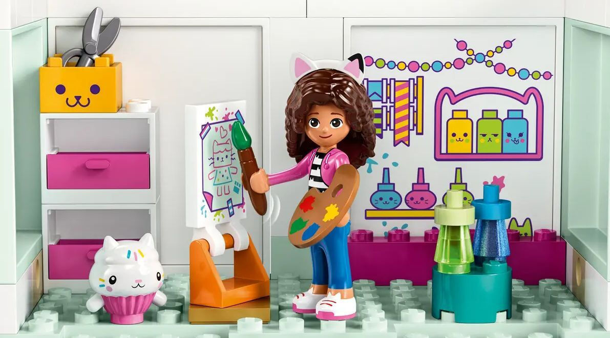 Τι θα κάνεις πρώτα στο Κουκλόσπιτο της Γκάμπι; Μπορείς να φτιάξεις μια τούρτα στην κουζίνα, να παίξεις στην τσουλήθρα στο play room, να γίνεις δημιουργικός στο δωμάτιο καλλιτεχνικών, να παίξεις πιάνο στο δωμάτιο μουσικής, να περιποιηθείς τον εαυτό σου στο μπάνιο, να πάρεις έναν υπνάκο στο υπνοδωμάτιο ή να πας στην ταράτσα για ένα πάρτι στην περιστρεφόμενη πίστα χορού. Υπάρχουν τόσα πολλά να ανακαλύψεις στο εντυπωσιακό κουκλόσπιτο της Γκάμπι που δεν θα θέλεις να φύγεις ποτέ.