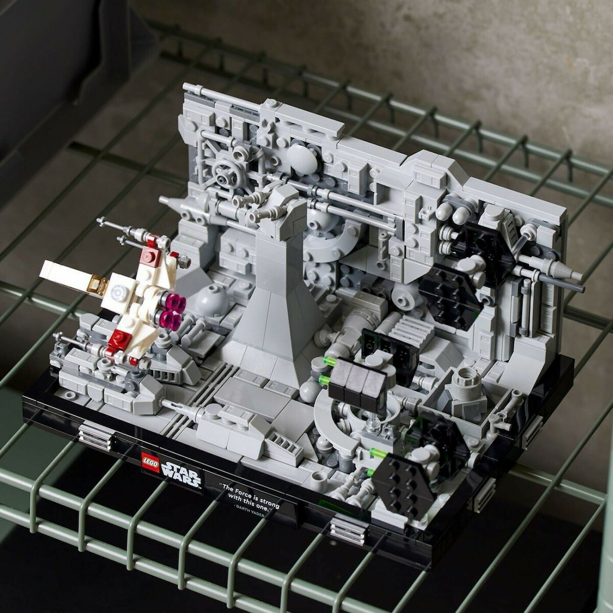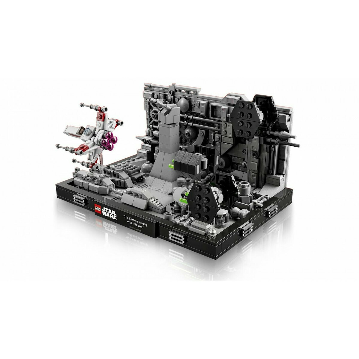 Συγκεντρώσου σαν Τζεντάι για να δημιουργήσεις ένα κατασκευασμένο από τούβλα στιγμιότυπο της επικής ταινίας Star Wars: Μια νέα ελπίδα. Αιχμαλωτίστε το μαχητικό TIE Advanced του Darth Vader και 2 μαχητικά TIE που καταδιώκουν το X-wing του Luke Skywalker πάνω από τη λεπτομερή επιφάνεια του Death Star. Προσθέστε την πλακέτα με τα λόγια του Darth Vader:”The Force is strong with this one”, για να ολοκληρώσετε ένα κεντρικό κομμάτι που σίγουρα θα σας φέρει αναμνήσεις.