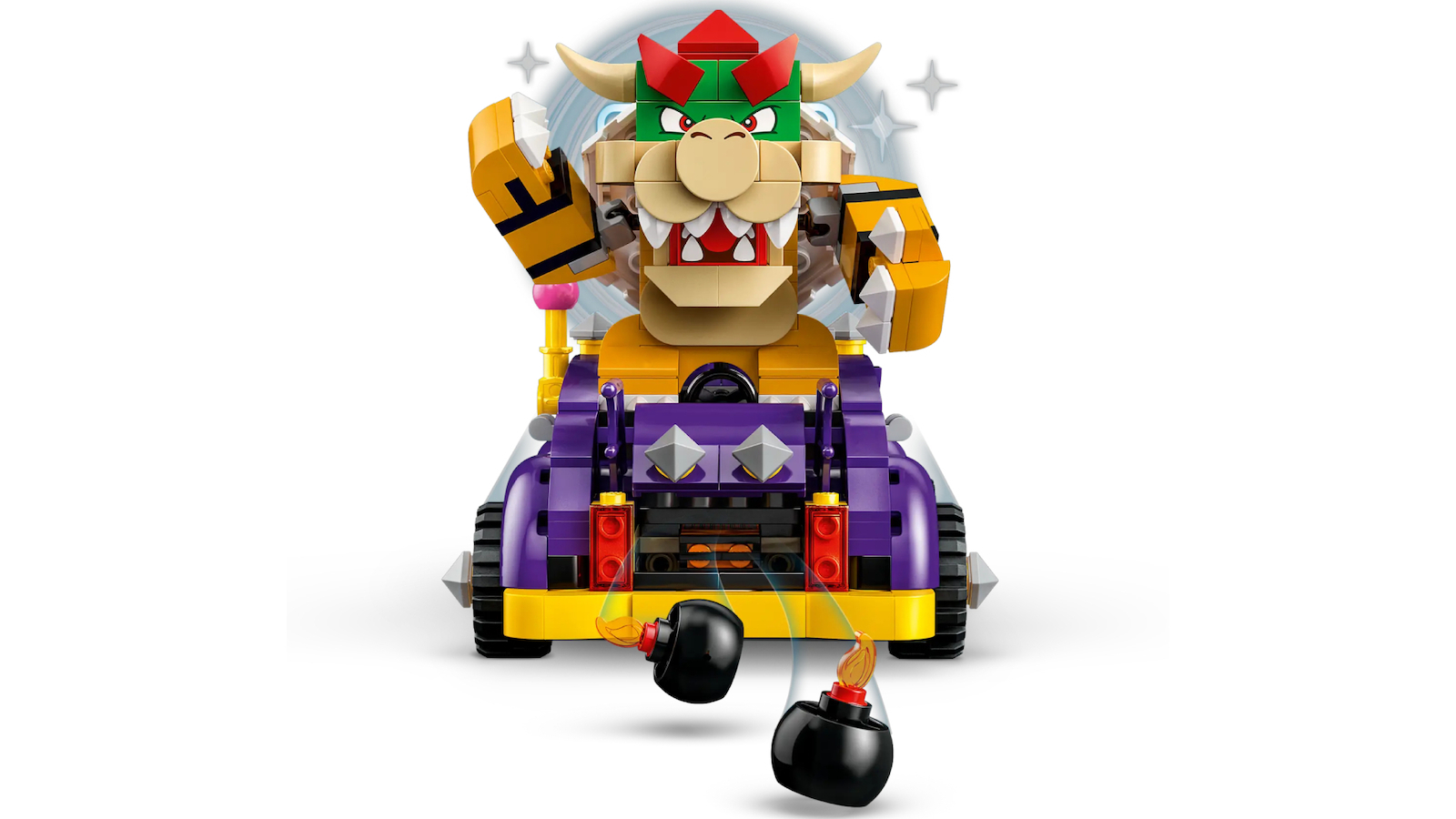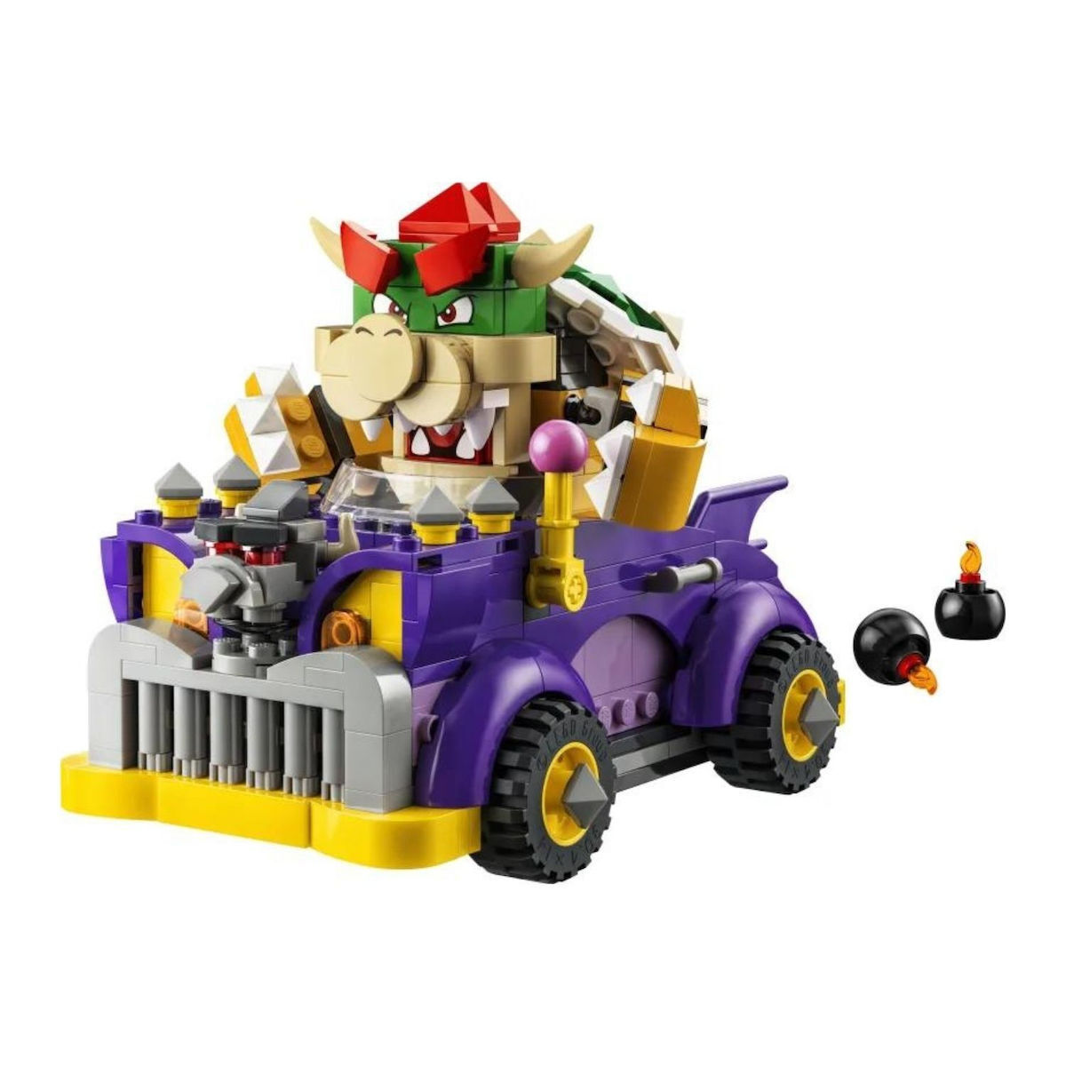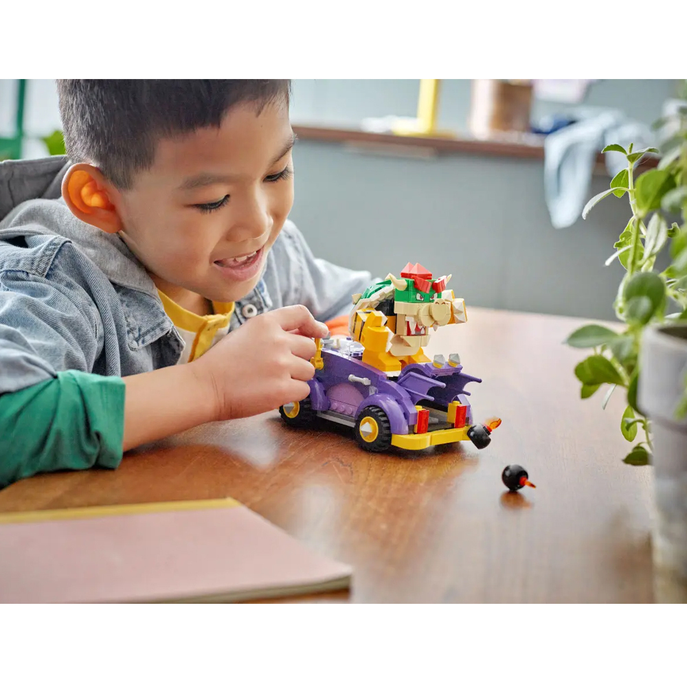 Κατασκεύασε και οδήγησε το απίθανο muscle car του Bowser! Χρησιμοποίησε τον κίτρινο μοχλό για να κάνεις το στολίδι στο καπό να κινηθεί ή να πετάξεις βόμβες από το πορτ-μπαγκάζ. Οδήγησε το αυτοκίνητο με τον LEGO® Mario, τον LEGO® Luigi ή την LEGO® Peach (οι φιγούρες δεν περιλαμβάνονται) για ηχητικά εφέ κόρνας, κινητήρα που λειτουργεί και ελαστικών που τρίζουν!