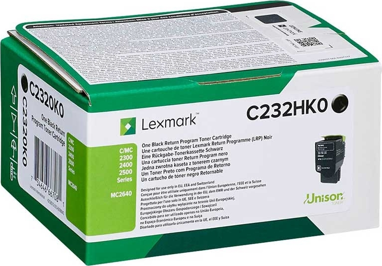 Το toner C232HK0 της Lexmark προσφέρει επαγγελματική εμφάνιση στις εκτυπώσεις σας και είναι ειδικά κατασκευασμένο ώστε να βοηθά στην εξοικονόμηση ενέργειας με απόδοση έως και 3000 σελίδες εκτύπωσης.