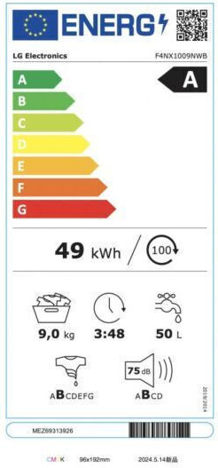 LG Πλυντήριο Ρούχων 9kg με Τεχνολογία Ατμού 1400 Στροφών F4NX1009NWB