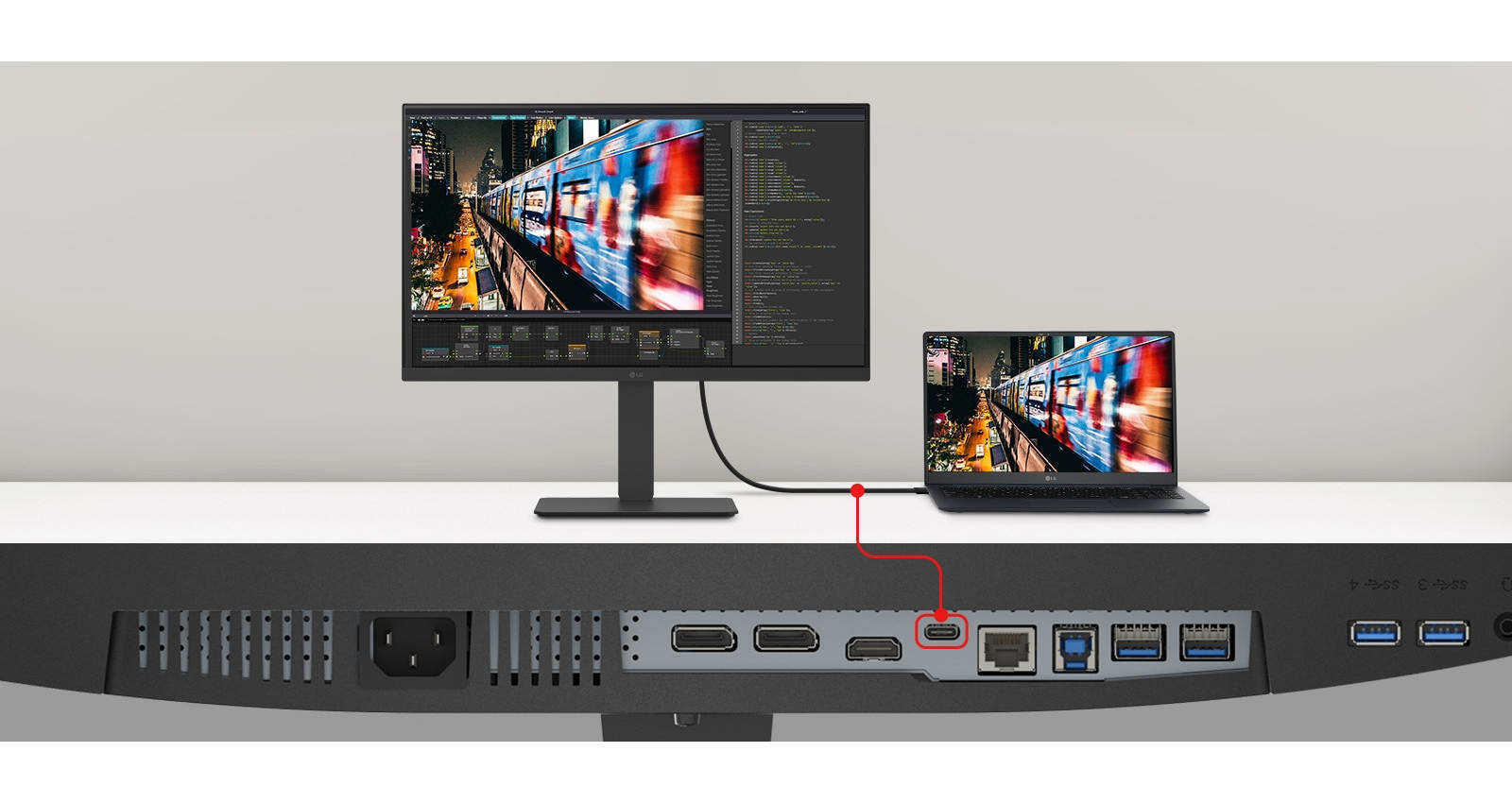 Η 24BA750 παρέχεται με πολλαπλές θύρες, που βελτιώνουν τις επιλογές σύνδεσης για εκείνους που εργάζονται σκληρά. Με τις πολλαπλές θύρες της, μπορείτε να συνδέσετε εύκολα πολλές συσκευές για την αποτελεσματική διαρρύθμιση του γραφείου.