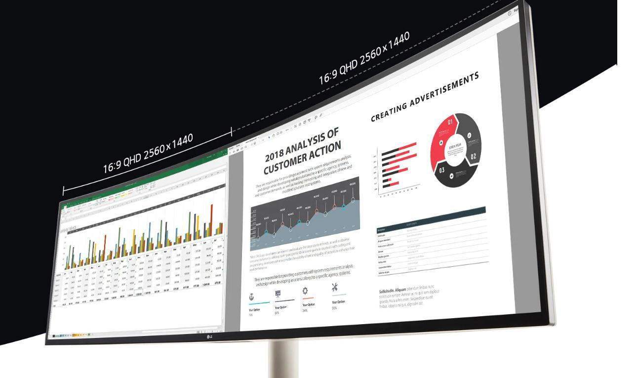 Το μοντέλο 49WL95X είναι ένα pc monitor UltraWide 32:9 Dual QHD (5120×1440) 49 ιντσών με διπλάσιο χώρο pixel, ανάλυση QHD και με λόγο διαστάσεων 16:9 σε μία οθόνη. Με 70% περισσότερα pixel σε σύγκριση με την ανάλυση FHD 32:9 (3840×1080), αφήνετε άνετα πίσω σας το multitasking και μεταβαίνετε σε μια πολυπλεξία πολλαπλών μορφών.