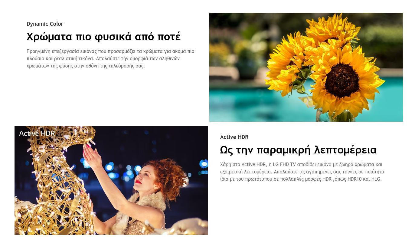 Το Active HDR βελτιστοποιεί κάθε σκηνή, προσφέροντας λεπτή λεπτομέρεια και πλούσιο χρώμα. Η μορφή πολλαπλών HDR, συμπεριλαμβανομένων των HDR10 και HLG, σε συνδυασμό με τη δυναμική τεχνολογία προσαρμογής σκηνής-σκηνής της LG, σας επιτρέπει να απολαμβάνετε οποιοδήποτε περιεχόμενο βίντεο σε εκπληκτική ποιότητα HDR.
