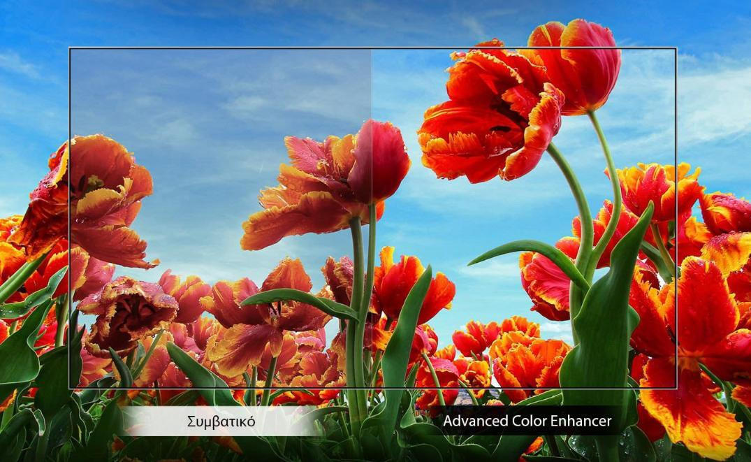Ο προηγμένος επεξεργαστής εικόνας προσαρμόζει τα χρώματα, για ακόμα πιο πλούσια και ρεαλιστική εικόνα. Απολαύστε την ομορφιά των αληθινών χρωμάτων της φύσης στην οθόνη της τηλεόρασής σας.