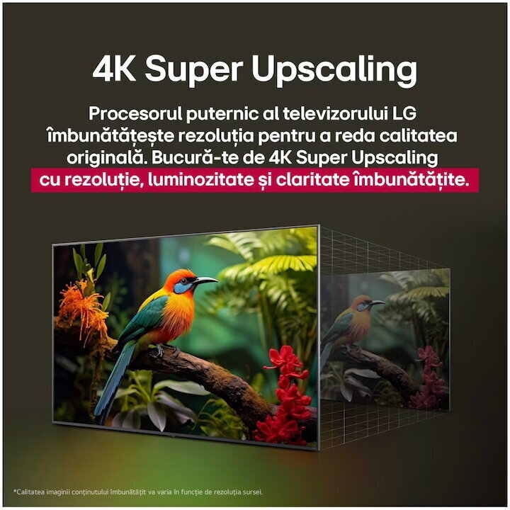 Ο ισχυρός επεξεργαστής της LG αναβαθμίζει την ανάλυση στην αρχική της ποιότητα. Απολαύστε αυξημένη ανάλυση, φωτεινότητα και καθαρότητα με το 4K Super Upscaling!