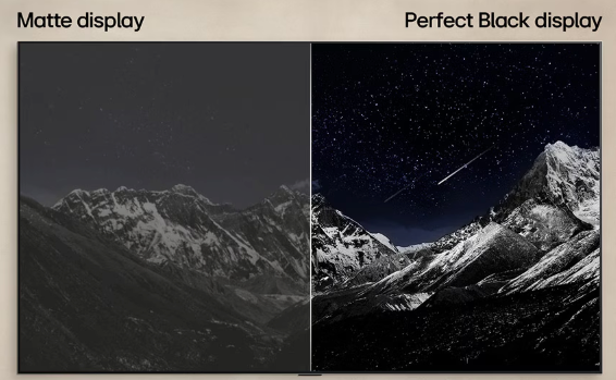 Η τεχνολογία Perfect Black εξασφαλίζει πιστοποιημένο πραγματικό μαύρο, ενισχύοντας τη φωτεινότητα και την αντίθεση ανεξαρτήτως φωτισμού στο περιβάλλον, προσφέροντας εικόνα με εντυπωσιακό βάθος και ένταση.